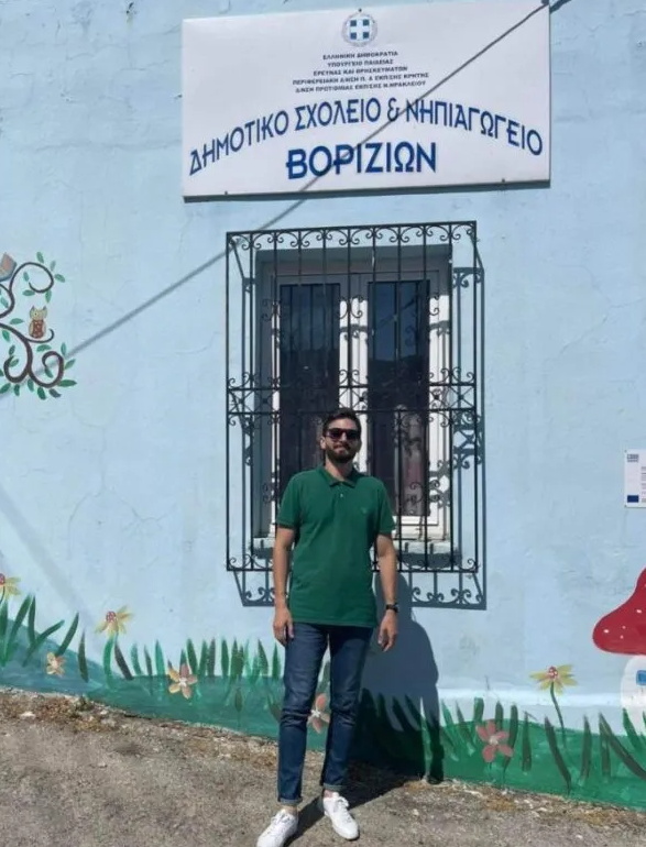 Ο κ. Γεωργιακάκης υπηρετεί στο Δημοτικό Σχολείο Βοριζίου, ένα τριθέσιο σχολείο το οποίο φέτος είχε 30 μαθητές σε όλες τις τάξεις και χρειάζεται τουλάχιστον άλλους τρεις εκπαιδευτικούς για να στελεχωθεί σωστά.