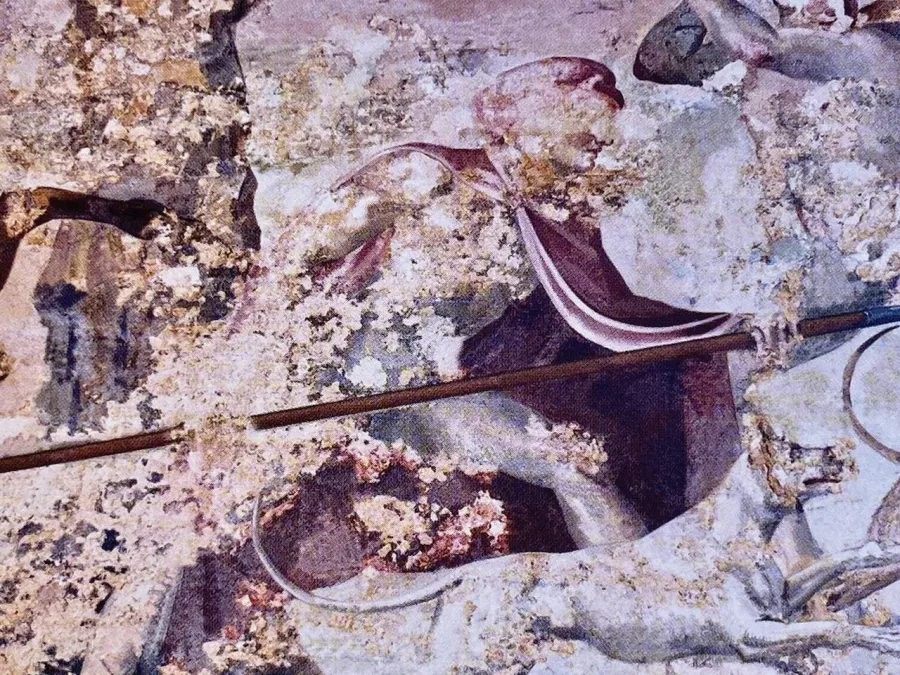 Σε μία από τις σκηνές που αναπαριστούν κυνήγι, ένας από τους απεικονιζόμενους κυνηγούς, ο οποίος εικάζεται ότι είναι ο Μέγας Αλέξανδρος, φορά ένα μωβ χιτώνιο με λευκές ρίγες, παρόμοιο με την περιγραφή της σαράπιδος που απαντά σε ιστορικές πηγές.