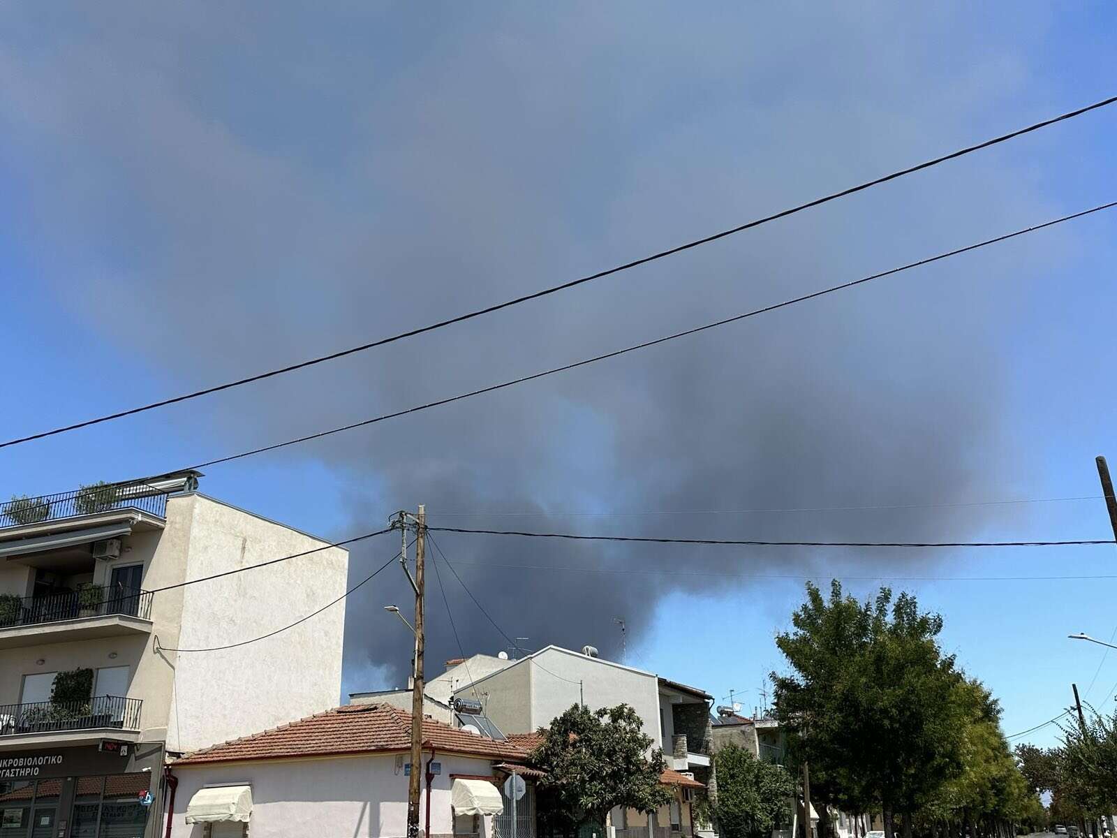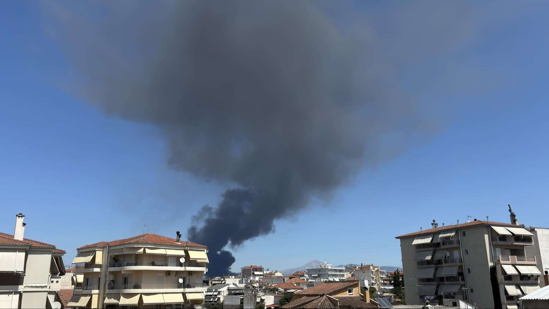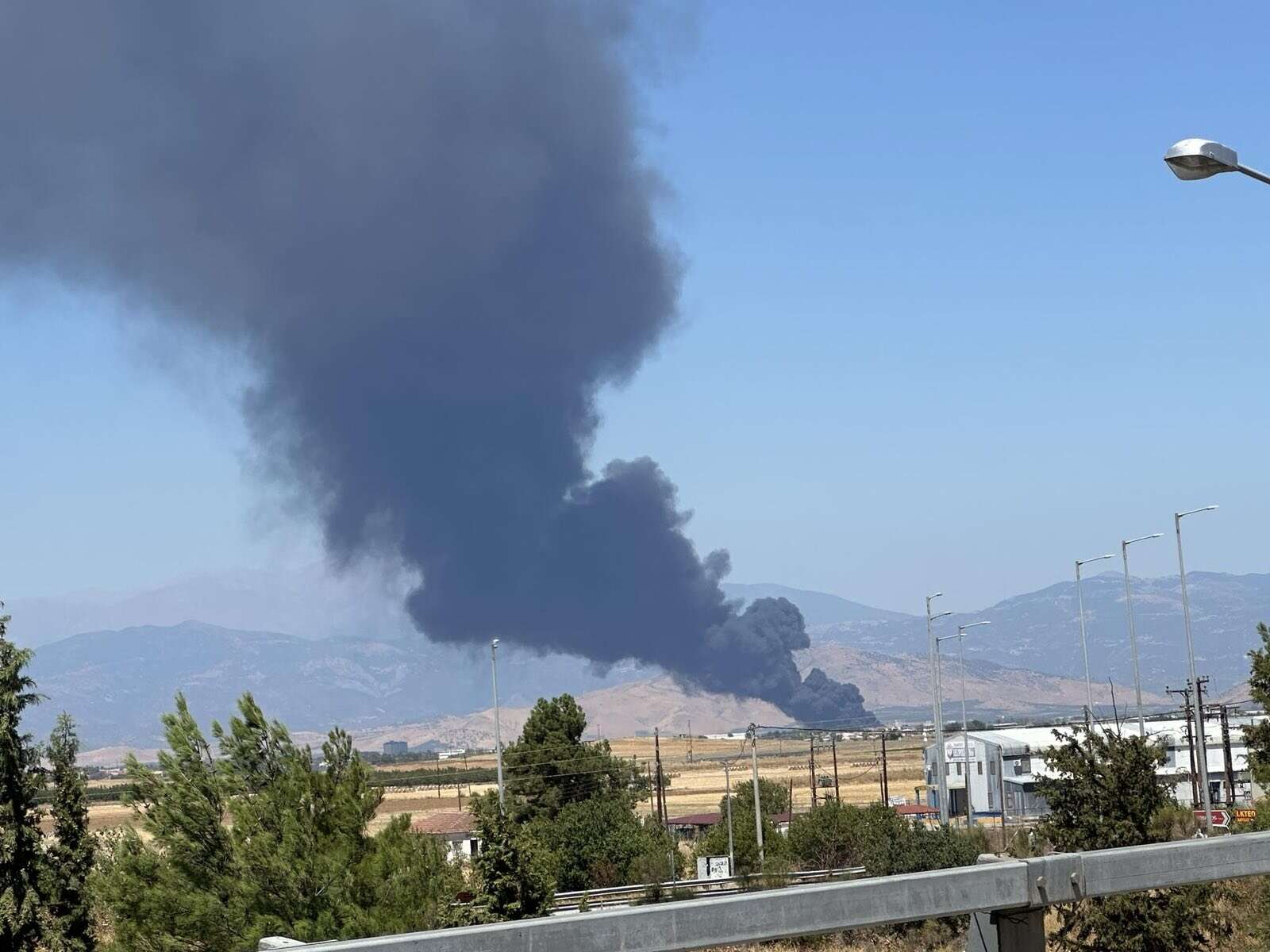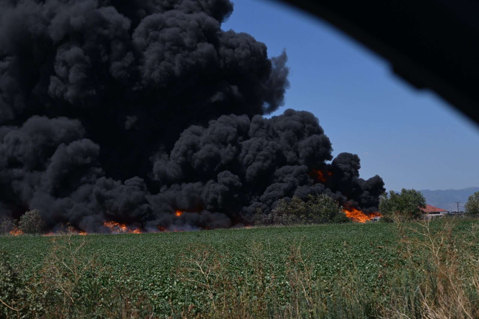 Πυκνοί μαύροι καπνοί έχουν σκεπάσει όλη την περιοχή και φαίνονται από χιλιόμετρα μακριά και από κάθε γωνιά της Λάρισας.