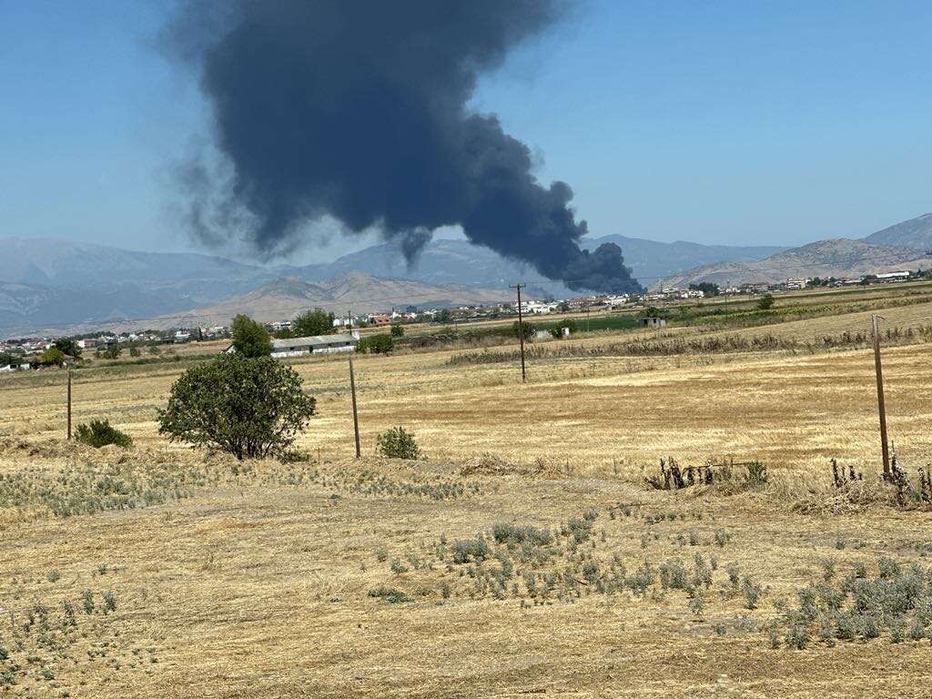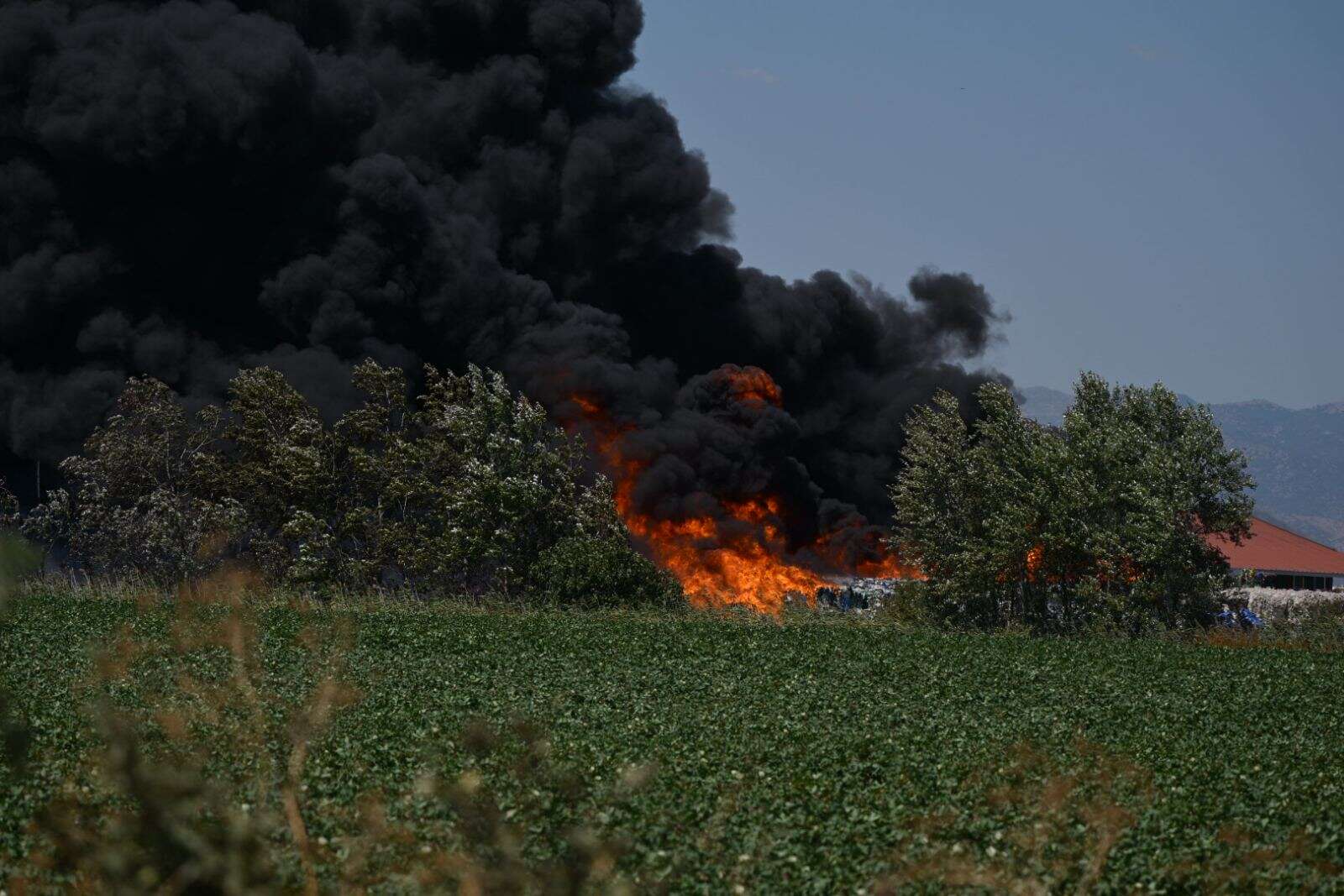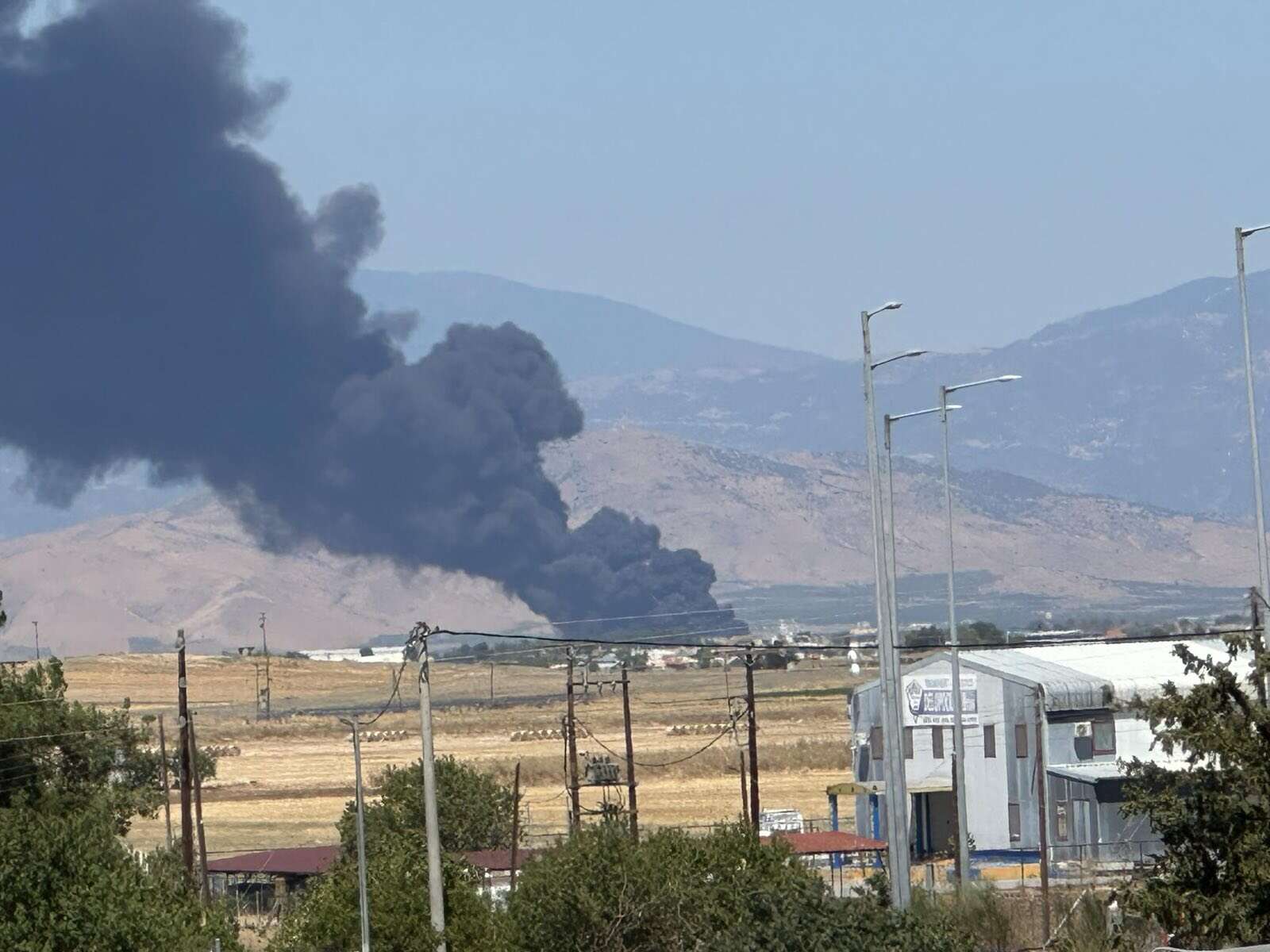 Πυκνοί μαύροι καπνοί έχουν σκεπάσει όλη την περιοχή και φαίνονται από χιλιόμετρα μακριά και από κάθε γωνιά της Λάρισας.