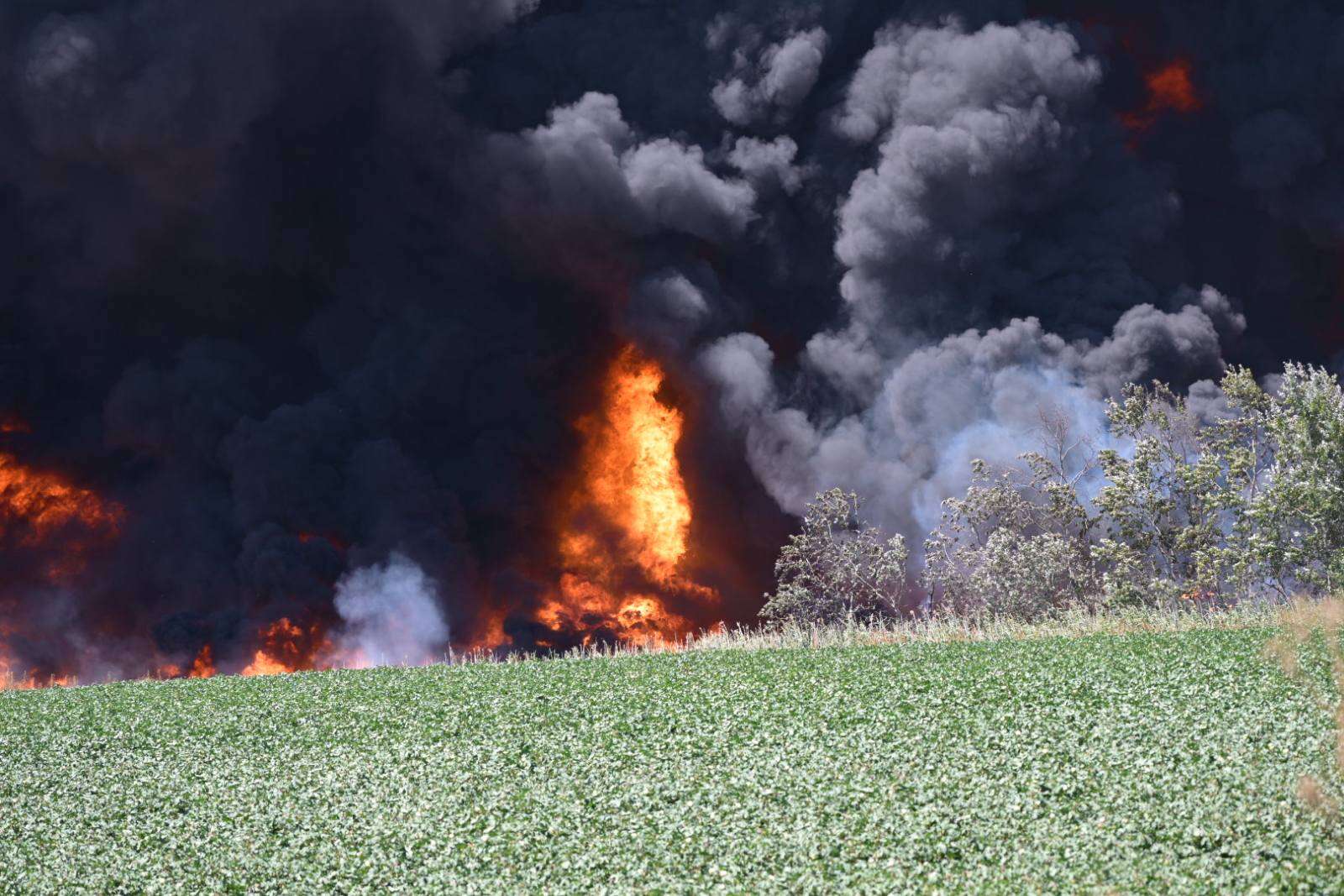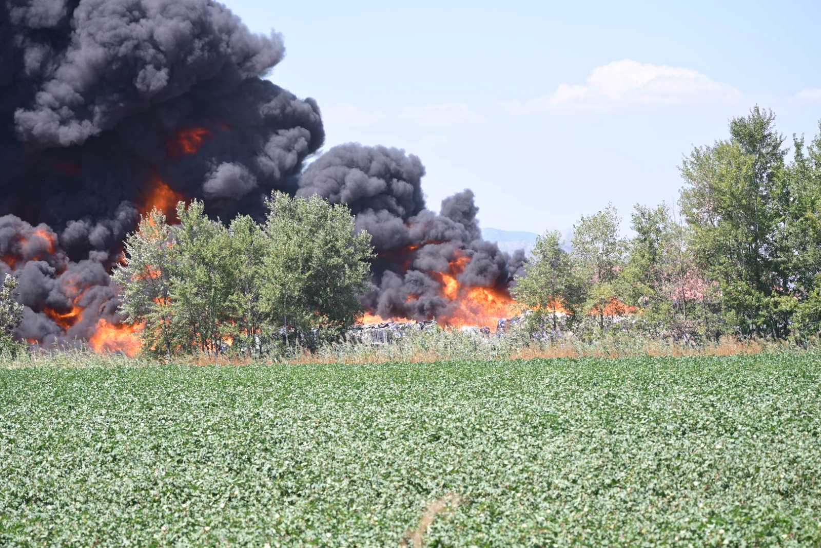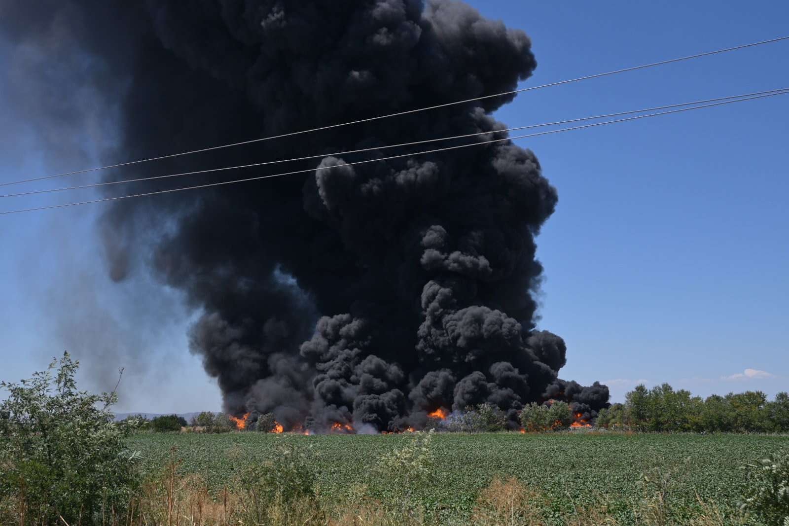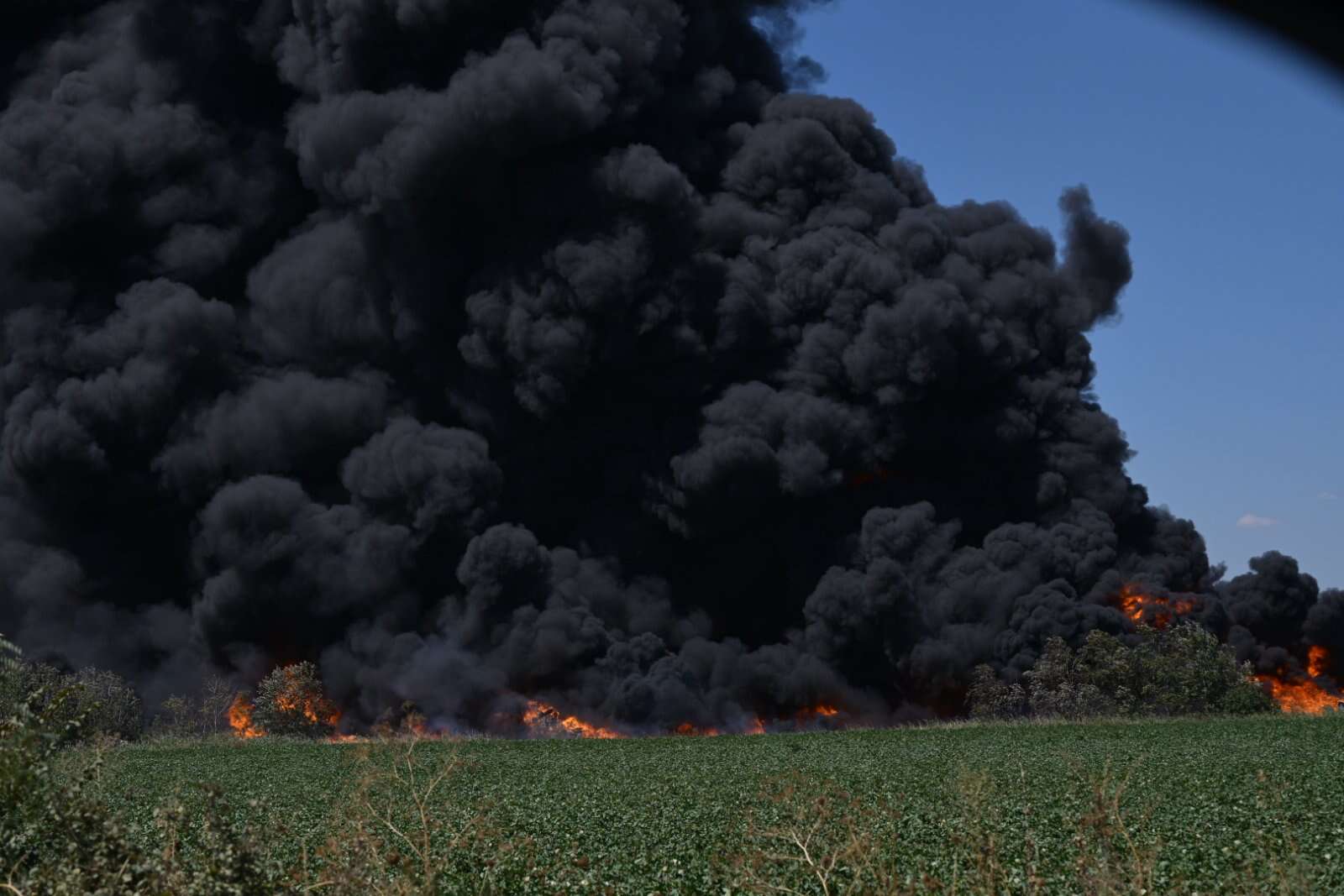 Πυκνοί μαύροι καπνοί έχουν σκεπάσει όλη την περιοχή και φαίνονται από χιλιόμετρα μακριά και από κάθε γωνιά της Λάρισας.