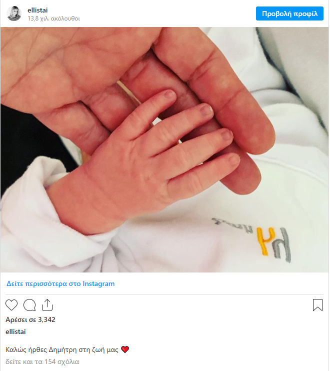 «Καλώς ήρθες Δημήτρη στη ζωή μας» έγραψε στο Instagram η κ. Στάη προσθέτοντας και μια καρδούλα.