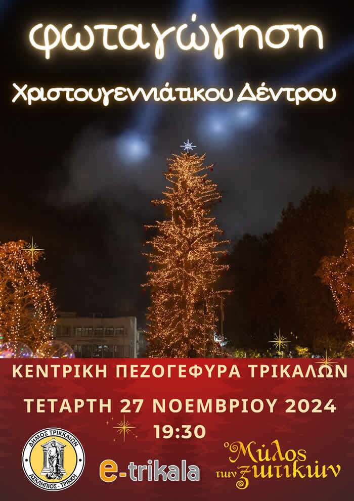 Γιορτή για την έναρξη της χριστουγεννιάτικης περιόδου ετοίμασαν ο Δήμος Τρικκαίων και η e-Trikala ΑΕ, με τη φωταγώγηση του υψηλότερου χριστουγεννιάτικου δέντρου της χώρας, στις 19:30 της Τετάρτης 27 Νοεμβρίου 2024.