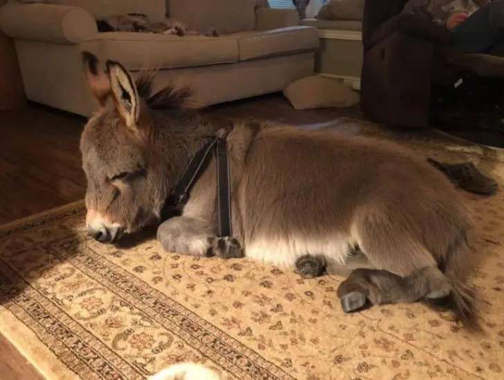Ο μικρός γάιδαρος απολαμβάνει να ανεβαίνει στους καναπέδες, να παίζει με το μπαλάκι του, να κυνηγάει και να γλύφει την ουρά του, ενώ λατρεύει τα χάδια και τα παιχνίδια στον κήπο.