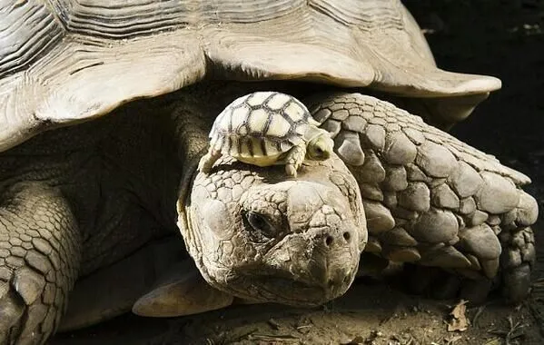 Η μαμά χελώνα ετών 140 έχει το γιο της, μόλις 5 ημερών, κορώνα στο κεφάλι της. Μια όμορφη εικόνα από τον κόσμο της φύσης στο Twitter από το Earth Pics.