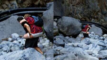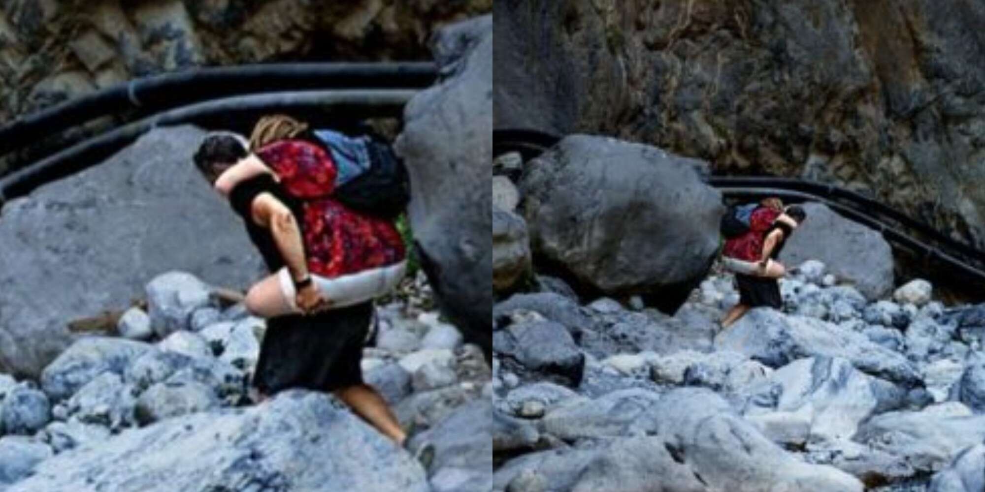 Διέσχισε το φαράγγι χαμογελώντας και κουβεντιάζοντας μαζί της σε όλη τη διαδρομή. Και το μόνο για το οποίο ζήτησε βοήθεια ήταν για να τους βγάλουν φωτογραφίες. Την ιστορία κατέγραψε ο Μανώλης Παπαδάκης στην ανάρτησή του στο Facebook, όπου ανέβασε και μερικές φωτογραφίες.