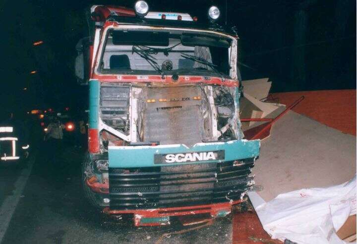 Στη στροφή ο οδηγός της νταλίκας χάνει τον έλεγχο, βγαίνει από την πορεία του και συγκρούεται πλαγιομετωπικά με το πούλμαν που μετέφερε τους μικρούς μαθητές. Τα ξύλα-νοβοπάν φεύγουν από τη θέση τους και σκίζουν την αριστερή πλευρά του πούλμαν, αλλά και… τους μικρούς μαθητές. Η τραγωδία είναι ανείπωτη, αλλά δεν σταματά εκεί.