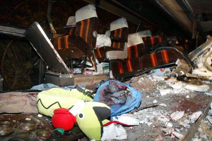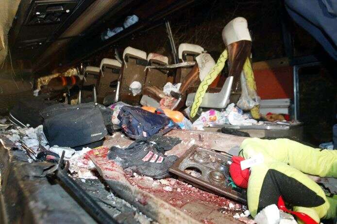Δύο ώρες χρειάστηκαν τα σωστικά συνεργεία, πυροσβεστικής και ΕΚΑΒ για να ανασύρουν ζωντανούς αλλά και νεκρούς μαθητές. Στις 02:00 τα ξημερώματα γνωστοποιήθηκε επίσημα ο τραγικός απολογισμός: 21 νεκροί μαθητές και 20 τραυματίες εκ των οποίων οι εννιά σε σοβαρή κατάσταση.