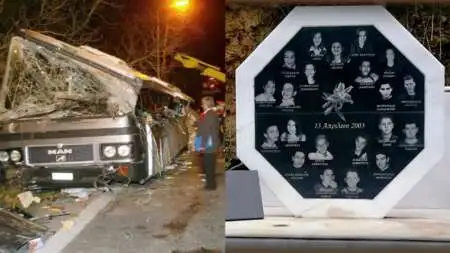Στη στροφή ο οδηγός της νταλίκας χάνει τον έλεγχο, βγαίνει από την πορεία του και συγκρούεται πλαγιομετωπικά με το πούλμαν που μετέφερε τους μικρούς μαθητές. Τα ξύλα-νοβοπάν φεύγουν από τη θέση τους και σκίζουν την αριστερή πλευρά του πούλμαν, αλλά και… τους μικρούς μαθητές. Η τραγωδία είναι ανείπωτη, αλλά δεν σταματά εκεί.