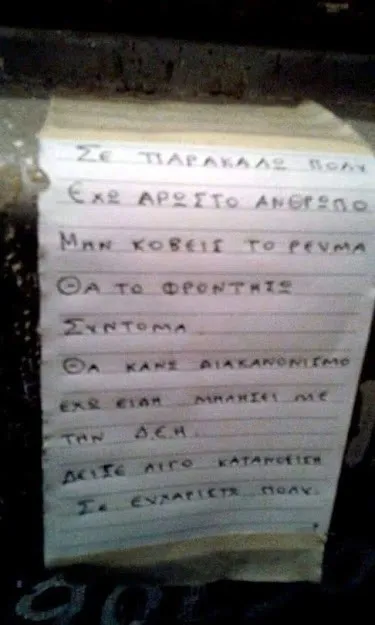 Συγκινητικό σημείωμα από έναν απεγνωσμένο κάτοικο