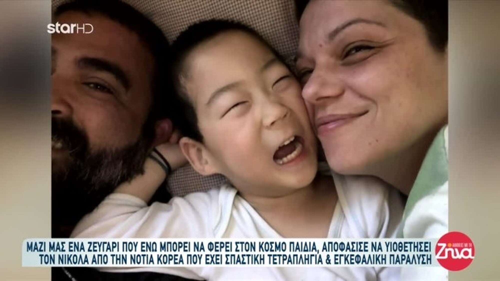 Ο Νικόλας, με καταγωγή από τη Νότια Κορέα, γεννήθηκε με σοβαρά κινητικά προβλήματα. Η Βίκυ και ο Κώστας τον γνώρισαν όταν εκείνος ήταν μόλις 18 μηνών, σε ένα νοσοκομείο όπου ο πατέρας της Βίκυς λάμβανε χημειοθεραπεία. Η Βίκυ, συγκλονισμένη από την εικόνα του μικρού Νικόλα, ένιωσε αμέσως μια βαθιά σύνδεση μαζί του. «Το μόνο που θυμάμαι όταν τον πήρα αγκαλιά ήταν ότι σκέφτηκα ‘Το παιδί μου’», περιγράφει η Βίκυ.