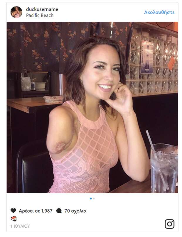 Η Λώρεν, μια 21χρονη κοπέλα από το Σαν Ντιέγκο της Καλιφόρνια, χρειάστηκε να υποβληθεί το 2016 σε εγχείρηση για την αφαίρεση του αριστερού της χεριού έπειτα από τροχαίο με μοτοποδήλατο.