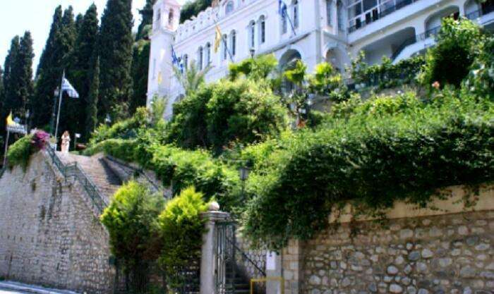 Η διπλή μεγάλη σκάλα συνδέει το Ναό και το συγκρότημα των ξενώνων του με το δημόσιο δρόμο που βουίζει από την αέναη κίνηση των αυτοκινήτων, ενώ μέχρι πριν κάποια χρόνια μια αμαξοστοιχία περνούσε στα πόδια της εκκλησίας και σφυρίζει χαρούμενα αποδίδοντας στη Παναγία ευλαβικό χαιρετισμό. Τώρα η γραμμή μεταφέρθηκε και αυτό τελείωσε.