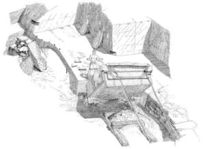 Κατασκεύασαν αυτοσχέδιους γερανούς με τεράστιες τροχαλίες στις οποίες προσαρμόστηκαν τσουλήθρες εκατέρωθεν για να λειτουργήσουν ως αντίβαρα. Εκτός από αυτή τη μέθοδο, οι τεχνίτες κατασκεύαζαν και ξύλινους γερανούς.