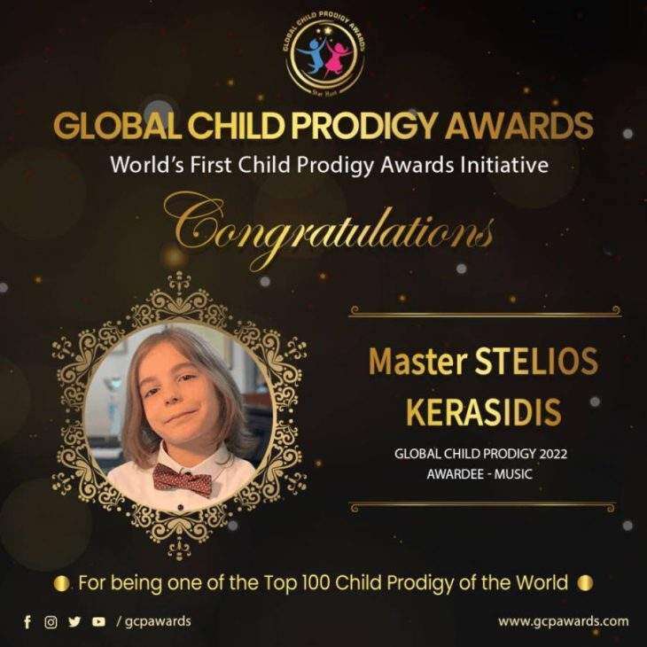 Ο 9χρόνος πιανίστας, Στέλιος Κερασίδης συγκαταλέγεται στα 100 μεγαλύτερα ταλέντα του κόσμου σύμφωνα με τα πρόσφατα Global Child Prodigy Awards