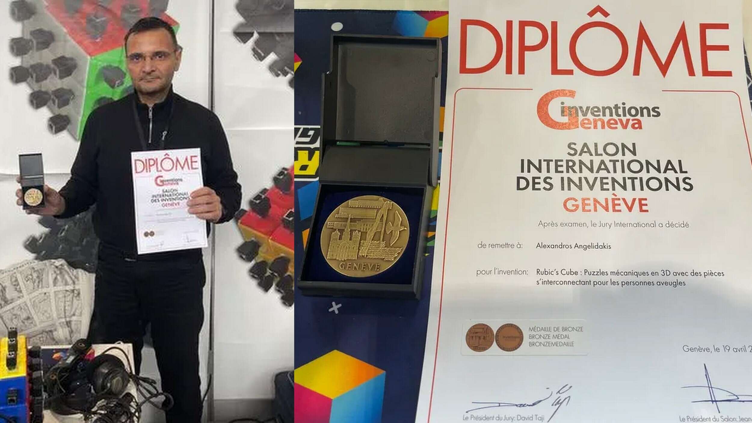 To χάλκινο μετάλλιο σε παγκόσμιο διαγωνισμό εφευρέσεων στη Γενεύη κατέκτησε ο κρητικός Αλέξανδρος Αγγελιδάκης που δημιούργησε τον Κύβο του Ρούμπικ για τυφλούς.