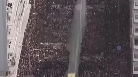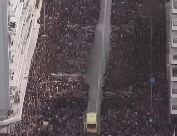 Παρά τον τεράστιο αριθμό των διαδηλωτών, οι συμμετέχοντες άφησαν χώρο για έναν διάδρομο προκειμένου από εκεί να περάσει το ασθενοφόρο.