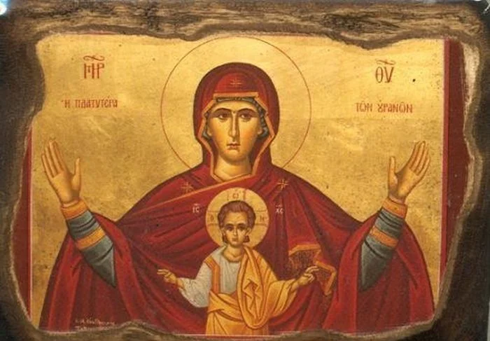 Κυριώνυμη Παναγία, Ναέ Θεού, ακατάλυτος, Ουρανώσασα τον χουν, Όμβρος ζωοδότης άλυτος, Όνομα πολυπόθητον, Σκήνωμα οχυρώσασα απόρθητον, Στήριγμα ευσεβών, σκεύος Ιερόν αλώβητον, Αγίας Τριάδος δώρημα το τέλειον παρρησίας, η Χάρις νοερών, παρισταμένη τω Θεώ, φλοξ αθανασίας.