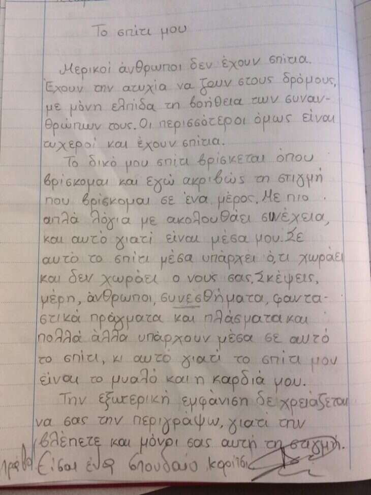 Δεν γνωρίζουμε πως τα πήγαν τα άλλα παιδιά, αλλά μία έκθεση μαθήτριας κατάφερε σίγουρα να ξεχωρίσει καθώς περιέγραψε το «σπίτι» της με έναν μοναδικό τρόπο που δεν συναντά κανείς συχνά.