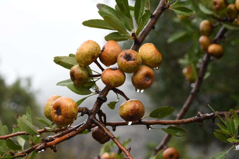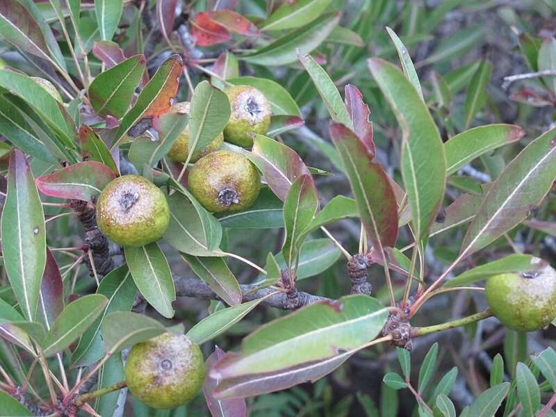 Ο καρπός της είναι μικρός και σφαιρικός, με διάμετρο περίπου 2 – 3 εκατοστά, πράσινος και στυφός όταν είναι άγουρος. Όταν ωριμάζει παίρνει το καστανοκίτρινο χρώμα και είναι πιο γλυκός. Φυτρώνει συνήθως σε υψόμετρο μέχρι 1500 μέτρων.