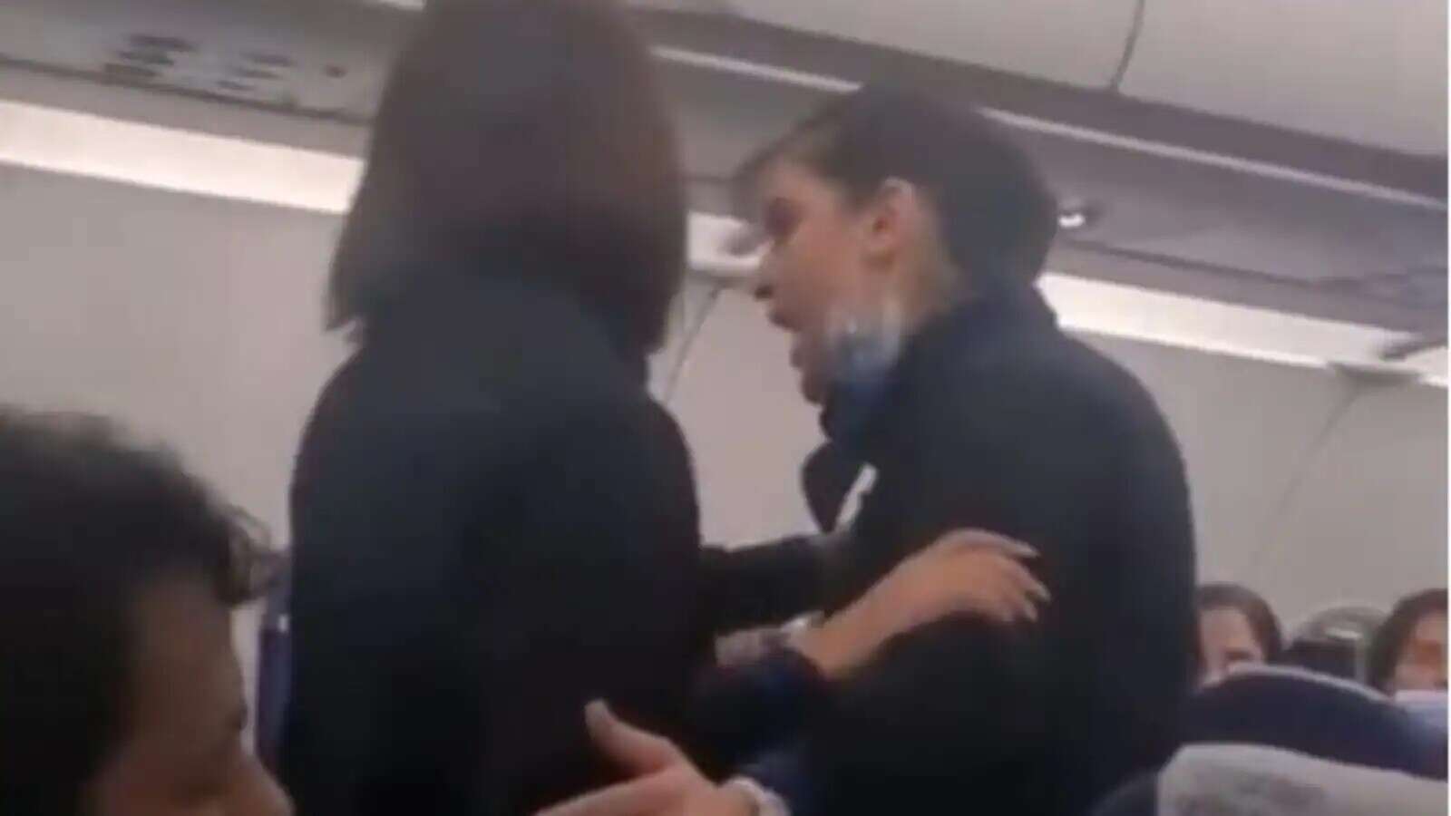 Σε εκείνο το σημείο, μια άλλη αεροσυνοδός μπήκε στη μέση και προσπάθησε να απομακρύνει την έξαλλη συνάδελφό της, υπογραμμίζοντας «λυπάμαι αλλά δεν μπορείτε να μιλάτε έτσι στο πλήρωμα. Εγώ σας άκουσα με σεβασμό και έτσι πρέπει να φέρεστε και εσείς».