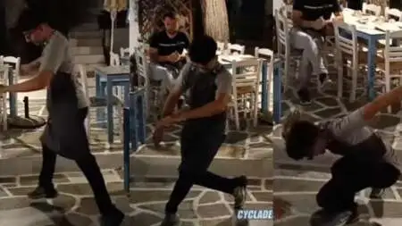 Αυτός όμως που έκλεψε την παράσταση ήταν ο νεαρός σερβιτόρος του εστιατορίου, ο οποίος έκλεψε τις εντυπώσεις με τις χορευτικές του ικανότητες.