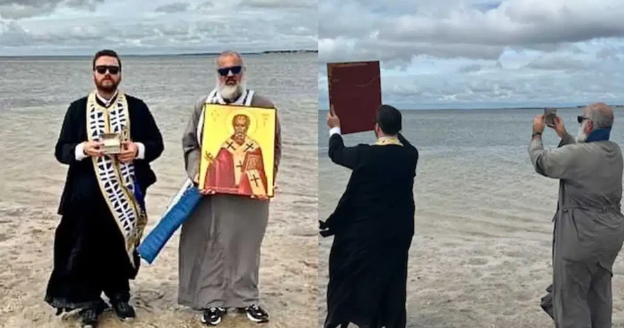 Στις 7 Οκτωβρίου 2024, εν αναμονή του τυφώνα “Milton”, ο π. Αθανάσιος και ο π. Θεοφάνης, με την ειδική άδεια του Αστυνομικού Τμήματος του Tarpon Springs στη Φλόριντα, ταξίδεψαν με το Λείψανο και την Εικόνα του Αγίου Νικολάου στην παραλία Sunset για να ευλογήσουν τον Κόλπο του Μεξικού.