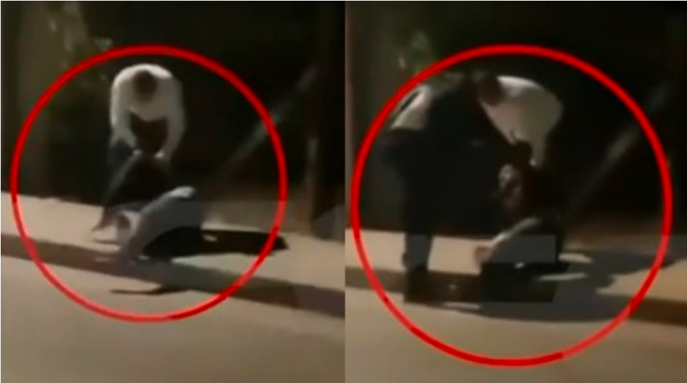 Επικρατεί πανζουρλισμός στο σημείο, με τους θαμώνες του μαγαζιού να τρέχουν πίσω από τον 35χρονο άνδρα. Ένας γονέας τον προλαβαίνει. Τον ρίχνει κάτω, τον χαστουκίζει και τον σέρνει στο έδαφος. «Κάτσε κάτω, κάτω. Κάτσε κάτω ρε. Κάτσε κάτω», ακούγεται να του λέει.