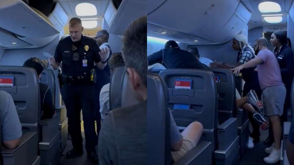 Ο πρώτος άνδρας ρώτησε τη γυναίκα αν είναι καλά, πριν οι επιβάτες της πουν να μετακινηθεί σε άλλη άδεια θέση μακριά από τον σύντροφό της. Καθώς εκείνη μετακινείται κατά μήκος του διαδρόμου, ο σύζυγος φώναξε ότι δέχθηκε επίθεση από τη γυναίκα και ισχυρίζεται ότι τον χαστούκισε, σύμφωνα με τα πλάνα. «Όχι, δεν σου επιτέθηκα», φώναξε εκείνη ως απάντηση. «Έβαλα το χέρι μου στο στόμα σου για να σε κάνω να το βουλώσεις», του είπε.