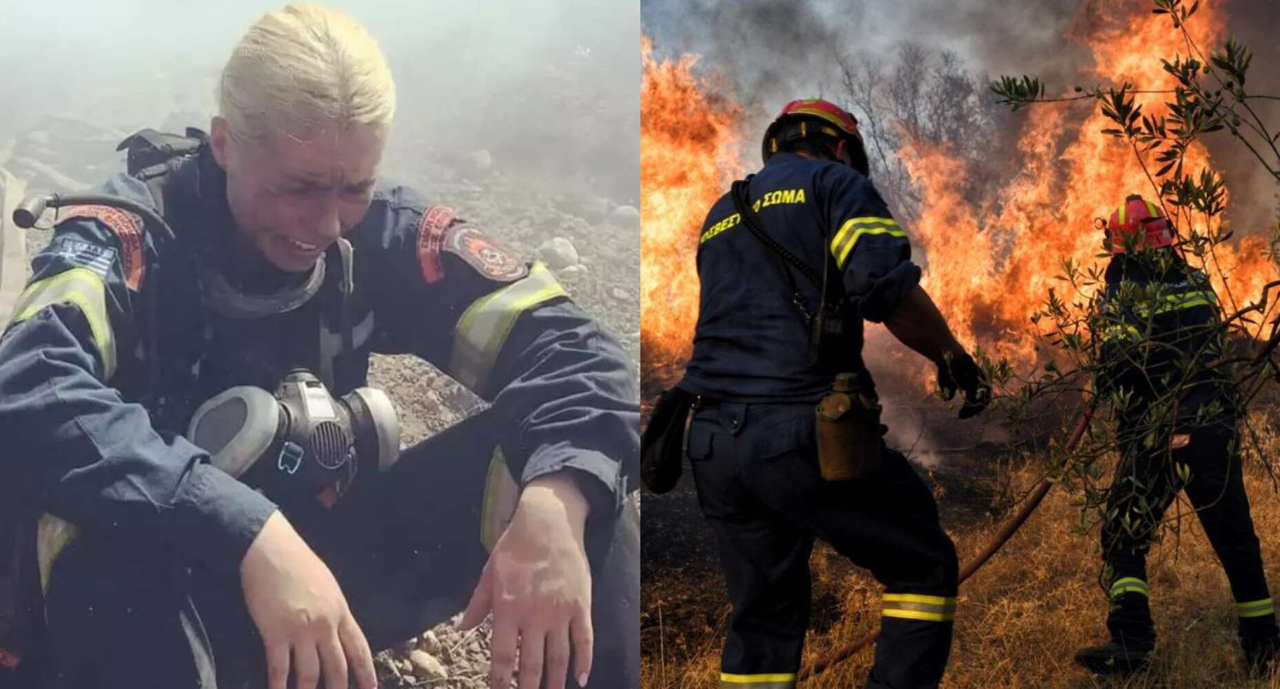 PLUSΣυγκλονιστική εικόνα από τις φωτιές: Γυναίκα πυροσβέστης ξεκουράζεται μέσα στους καπνούς