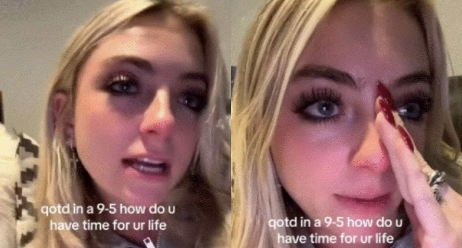 Την σκληρή πραγματικότητα κλήθηκε να αντιμετωπίσει μια νεαρή κοπέλα που ξέσπασε σε δάκρυα σε βίντεο που δημοσίευσε στο TikTok. Η κοπέλα μίλησε για το πόσο δύσκολο είναι να δουλεύεις 9 – 5 και την ίδια στιγμή να έχεις και χρόνο για τον εαυτό σου.
