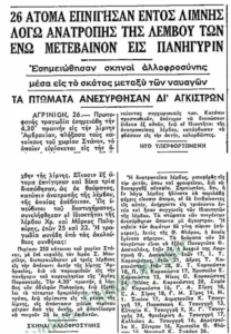 Μετά την ανάσυρση των πτωμάτων, η βάρκα μεταφέρθηκε στην ακτή για να γίνει αυτοψία από την αστυνομία. Το τραγικό συμβάν έγινε κατά τη διάρκεια του τέταρτου δρομολογίου της βάρκας. Υπεύθυνοι θεωρήθηκαν οι δύο ιδιοκτήτες, οι οποίοι διασώθηκαν και αργότερα συνελήφθησαν και παραπέμφθηκαν στον εισαγγελέα με την κατηγορία της ανθρωποκτονίας εξ’ αμελείας. Τελικά αθωώθηκαν και έφυγαν για πάντα από την περιοχή. Η εκκλησία παρέμεινε κλειστή για δέκα χρόνια, όσο διήρκεσε και το πένθος του χωριού…
