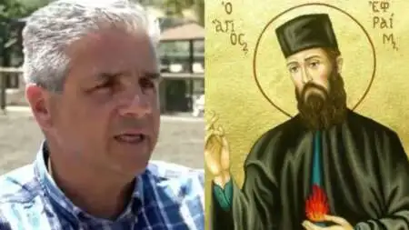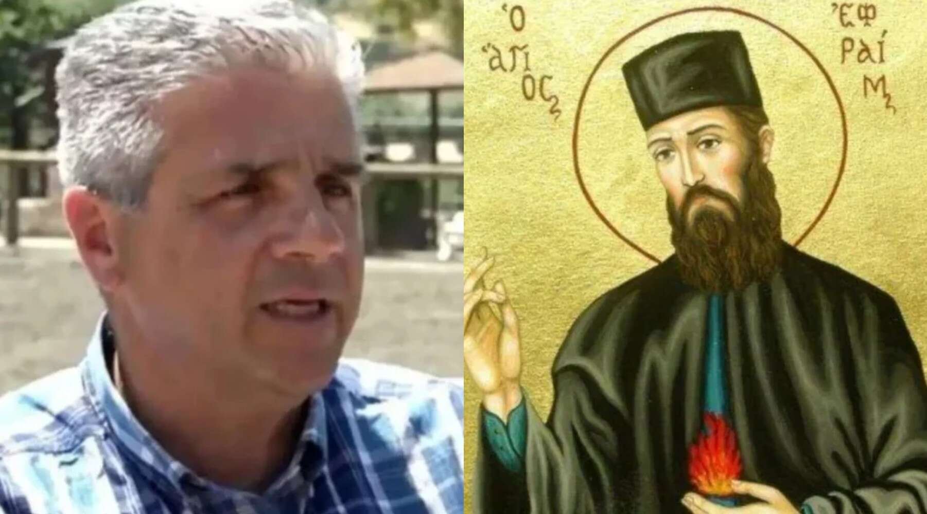 «Το θαύμα που βίωσα με τον Άγιο Εφραίμ ήταν το κλικ που μου άλλαξε το ζωή. Είχα έναν πόνο στην πλάτη και θεώρησα ότι ήταν καρδιά. Ο γιατρός με εξέτασε και μου είπε ότι όλα είναι τέλεια. Έκανα γαστροσκόπηση και έδειξε καρκινικό όγκο, ευτυχώς ήταν επιφανειακός. Εκεί μουδιάζεις, σταματάει ο κόσμος. Πήγαμε με τη σύζυγό μου στον Άγιο Εφραίμ, για μένα δεν είναι άγιος είναι φίλος μου. Έβαλα το βαμβάκι με το λαδάκι πάνω στο σημείο που θα γινόταν η επέμβαση και ξαφνικά στο δωμάτιο άρχισε να μυρίζει μύρο. Η Ηγουμένη μου είπε ότι με μύρο εμφανίζεται ο Άγιος. Αυτό που με προβλημάτισε είναι γιατί διάλεξε να εμφανιστεί σε μένα ο Άγιος Εφραίμ» εξομολογήθηκε ο δημοσιογράφος.