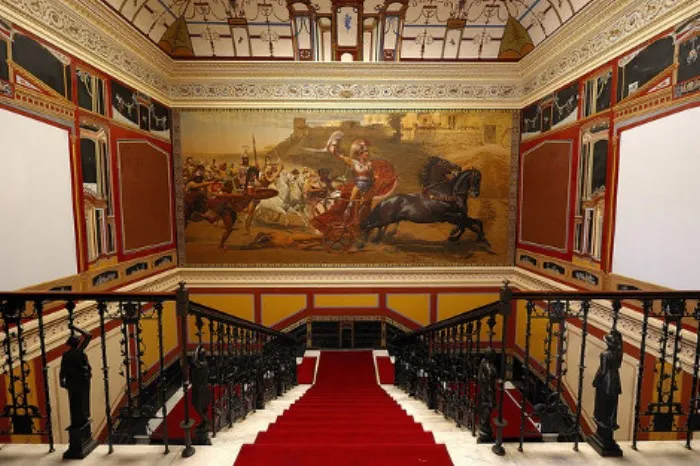 Στο τέλος της σκάλας υπάρχει μια μεγαλειώδης ελαιογραφία που απεικονίζει τον Θρίαμβο του Αχιλλέα στη μάχη με τον Έκτορα.