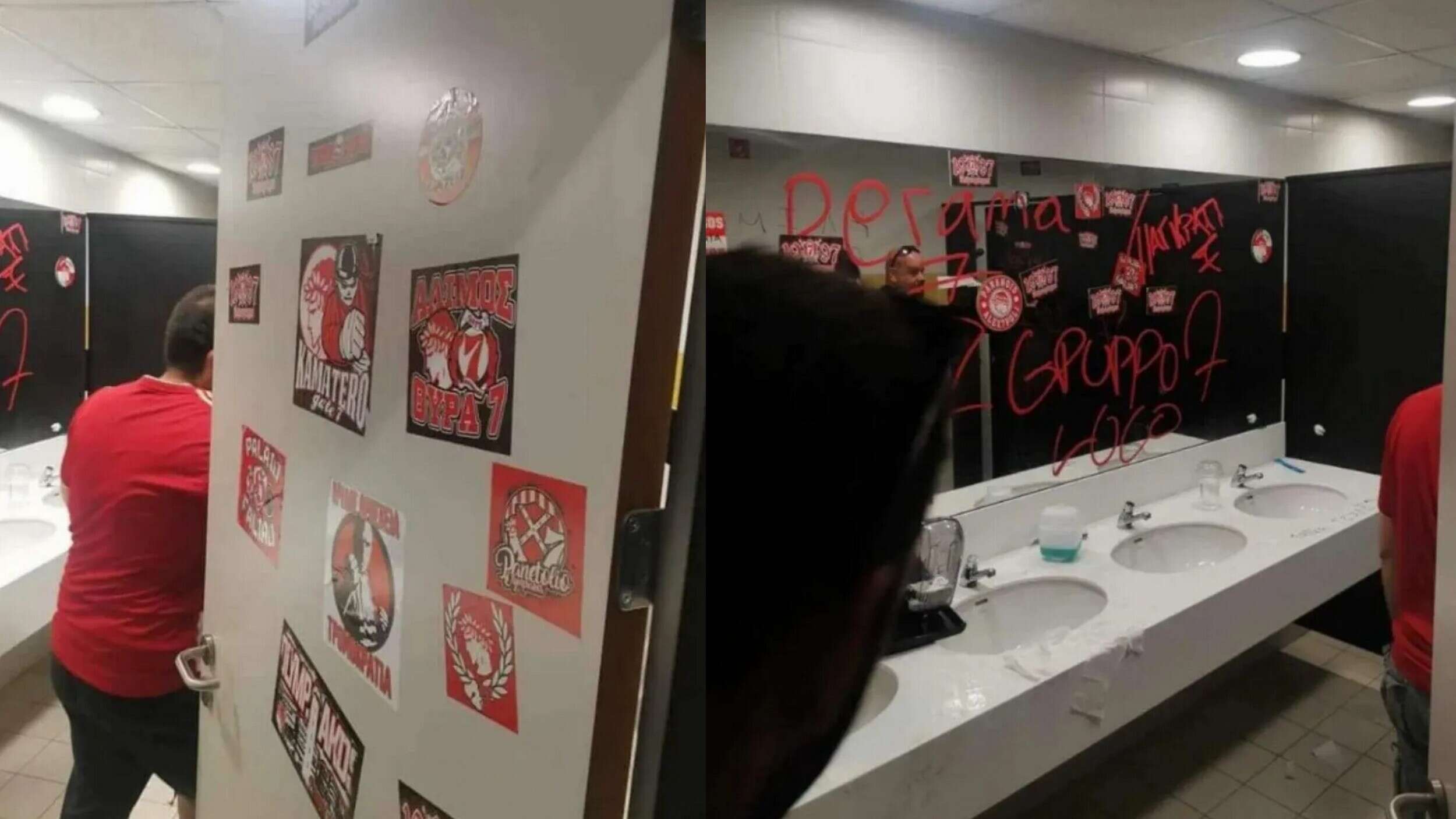 Οι οπαδοί των Πειραιωτών προκάλεσαν σοβαρές ζημιές στο γήπεδο της Νέας Φιλαδέλφειας, καθώς σημειώθηκαν βανδαλισμοί στον χώρο των τουαλετών, όπου έχουν ξηλωθεί πόρτες. Φέρεται, μάλιστα, να έχει συμβεί το ίδιο και με λεκάνες, αλλά και με καρεκλάκια στις εξέδρες. Παράλληλα, γράφτηκαν και υβριστικά συνθήματα στους τοίχους εντός «OPAP Arena».