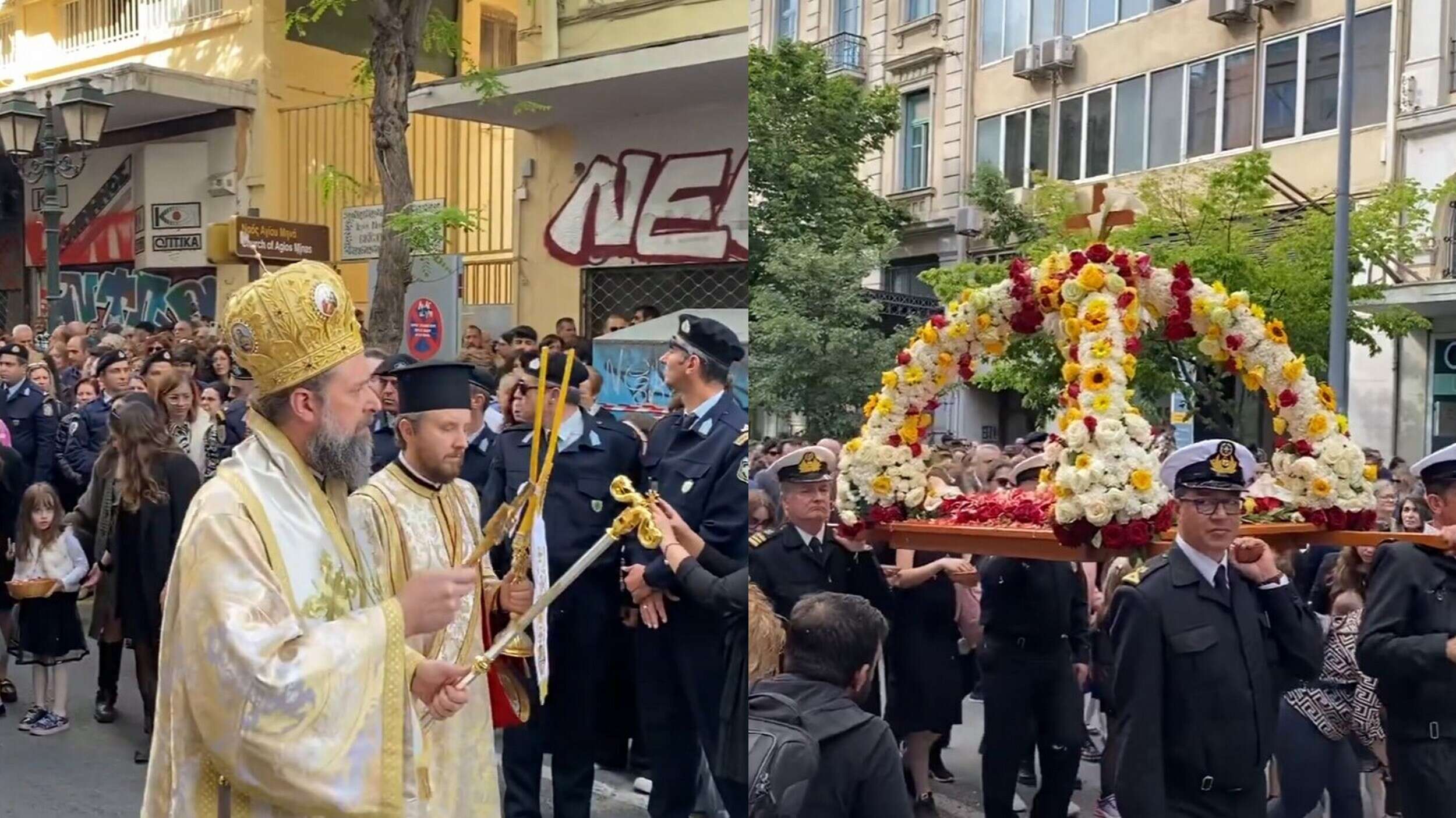 ΔιάφοραΘεσσαλονίκη: Πλήθος πιστών στην περιφορά του Επιταφίου του Ι.Ν. Αγίου Μηνά