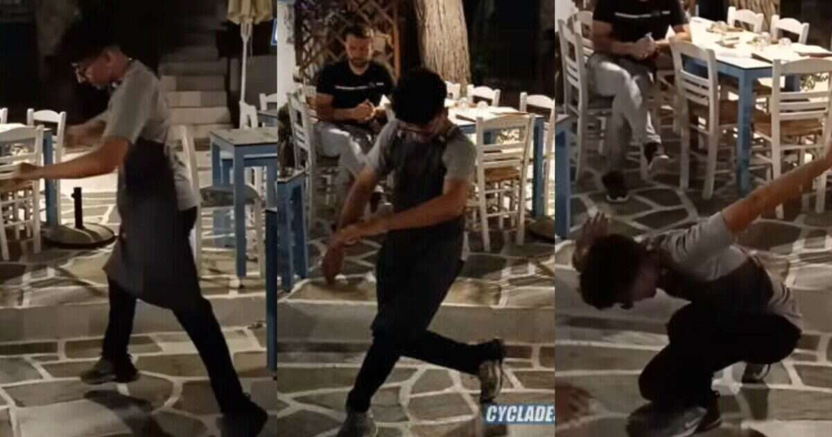 Αυτός όμως που έκλεψε την παράσταση ήταν ο νεαρός σερβιτόρος του εστιατορίου, ο οποίος έκλεψε τις εντυπώσεις με τις χορευτικές του ικανότητες.