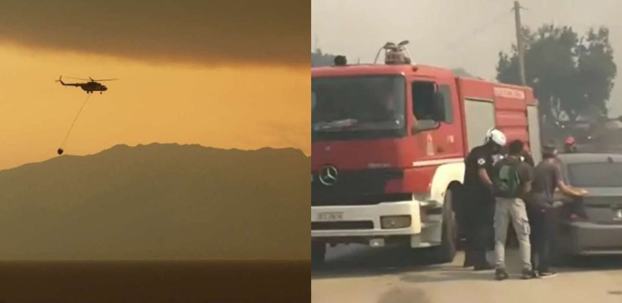 Σε πλάνα που μετέδωσε ο Alpha από την Αμυγδαλέζα καταγράφηκαν οι δραματικές προσπάθειες πυροσβεστών, κατοίκων και εθελοντών, την ώρα που οι φλόγες έφταναν στα σπίτια.