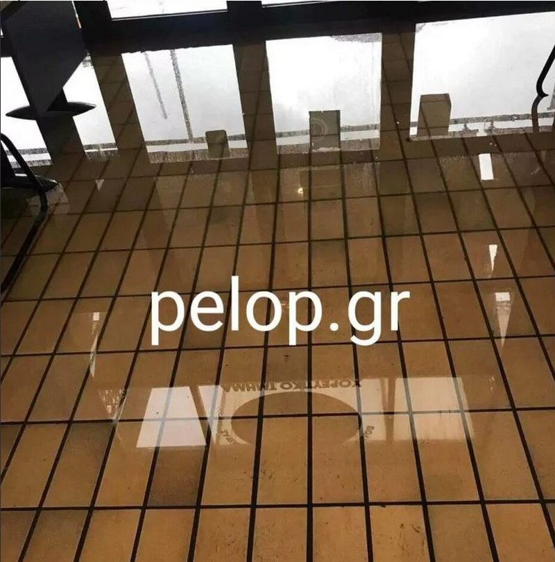 Την ίδια ώρα, βρόχινα νερά μπήκαν στο εσωτερικό του ΚΕΠ του Δήμου Πατρέων, πλημμυρίζοντας τον χώρο