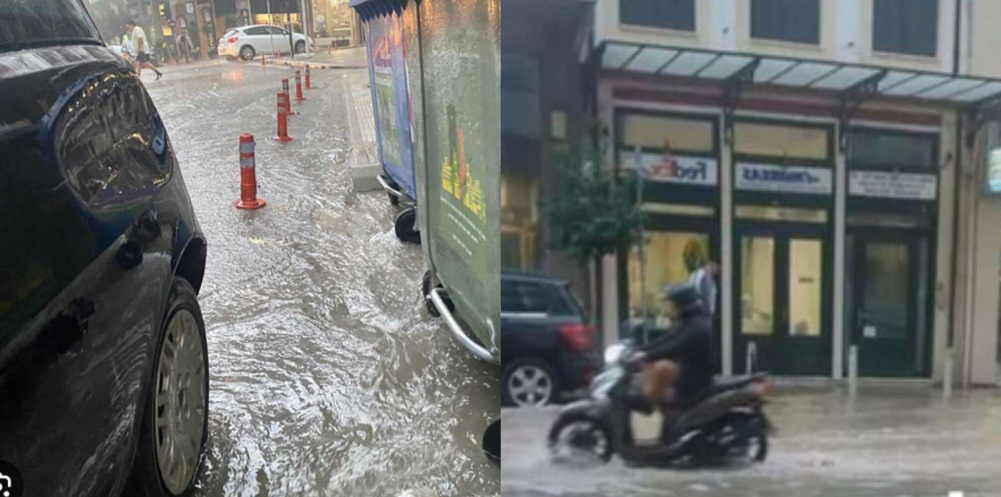 Στο ίδιο έργο θεατές οι καταστηματάρχες στο κέντρο και σε συνοικίες της Πάτρας, που με σκουπές επιχειρούν να απομακρύνουν τα νερά από τις επιχειρήσεις τους.