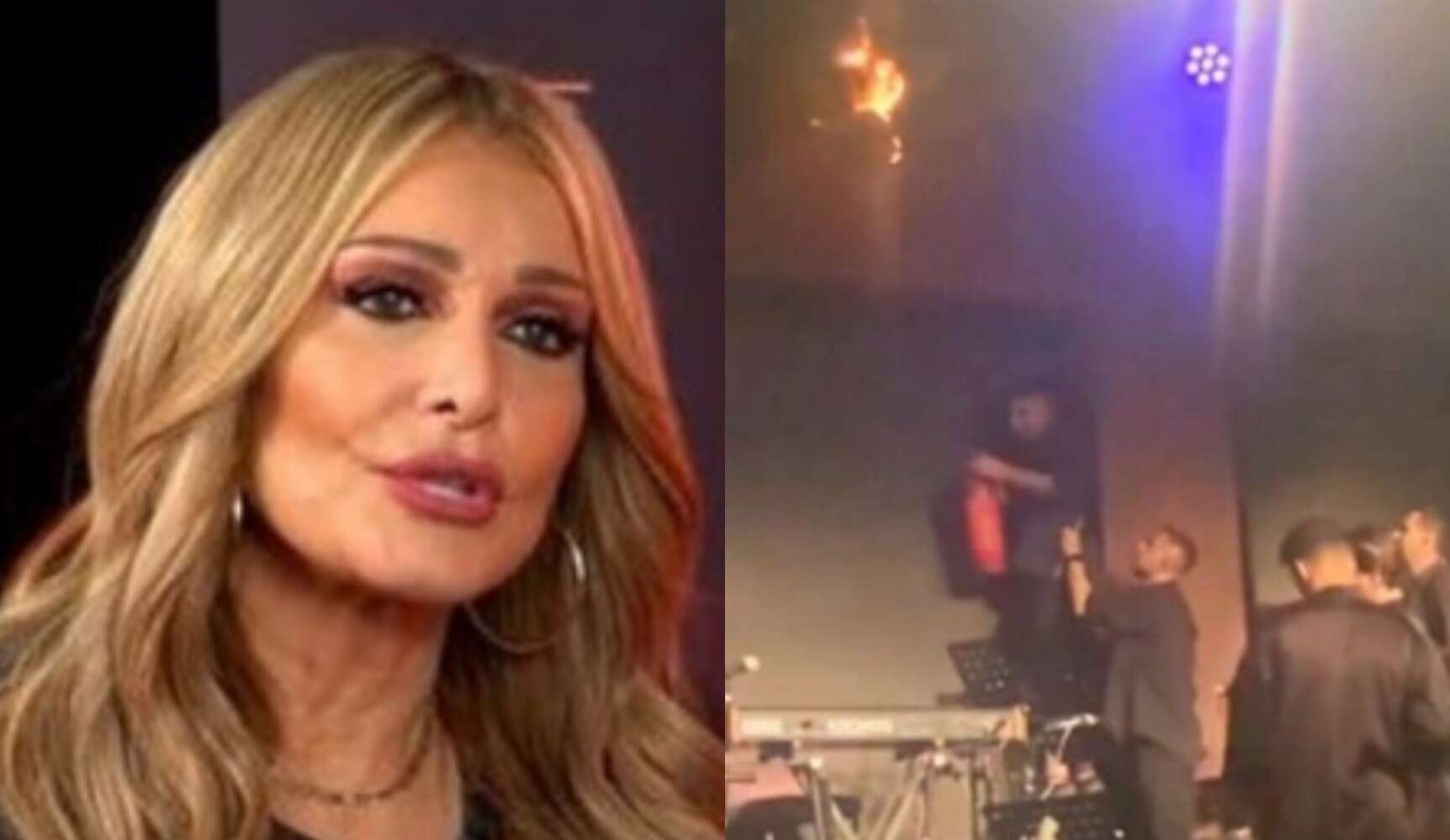 Πιο συγκεκριμένα την ώρα που οι 2 καλλιτέχνες τραγουδούσαν στη σκηνή, στο σημείο πίσω ακριβώς από την ορχήστρα ξέσπασε φωτιά στην οροφή από μια λάμπα. Όπως ήταν λογικό το πρόγραμμα διακόπηκε προκειμένου να δούνε τι θα έκαναν με τη φωτιά.