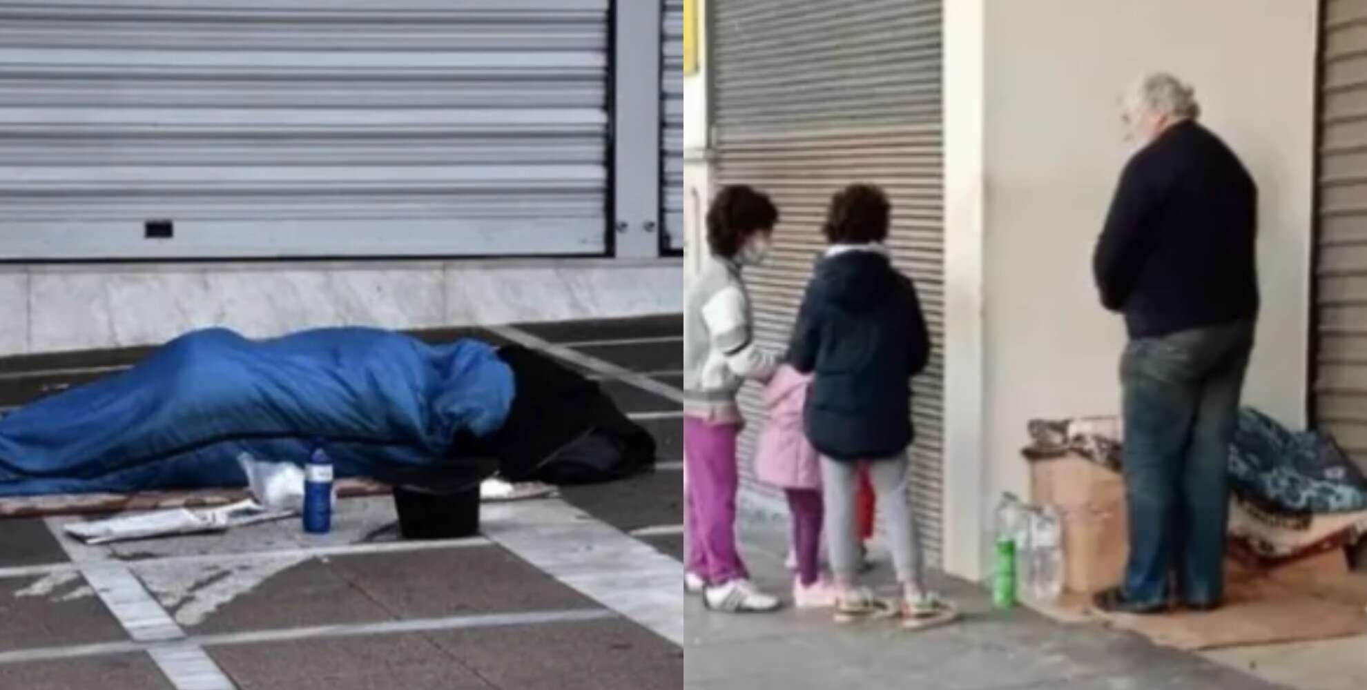 Η εν λόγω συγκινητική φωτογραφία με τον άστεγο και τα παιδάκια έχει γίνει viral τις τελευταίες ώρες και έχει συγκεντρώσει εκατοντάδες σχόλια.