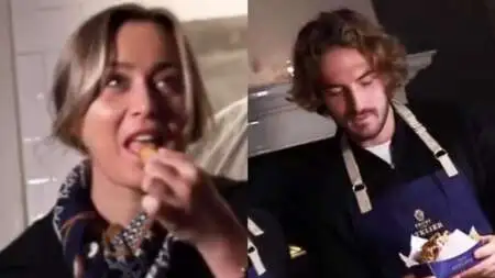 Με τον Στέφανο Τσιτσιπά να φοράει ποδιά και να δείχνει τις μαγειρικές του ικανότητες στην Ισπανίδα.