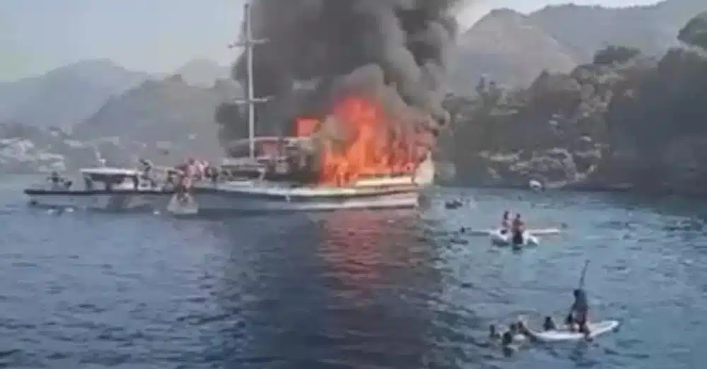 Yacht carrying tourists caught fire in Marmaris, Turkey