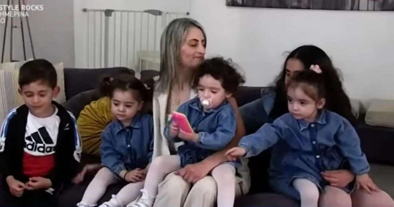 Η Αδαμαντίνη, μητέρα πέντε παιδιών, άνοιξε το σπίτι της και μίλησε στο sigmalive.com για τα 5 μικρά της αγγελάκια που μονοπωλούν την καθημερινότητά της. Μετά από δυο παιδιά η Αδαμαντίνη με το σύζυγό της θέλησαν να αποκτήσουν ένα τρίτο παιδάκι. Η μοίρα της επιφύλασσε μια έκπληξη και τελικά έμαθε ότι κυοφορεί τρίδυμα κοριτσάκια.