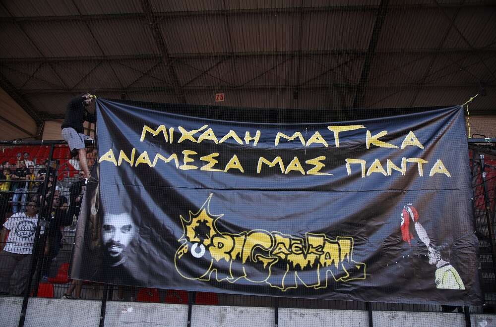 Οι φίλοι της «Ένωσης» δεν ξέχασαν τον Μιχάλη Κατσούρη, ο οποίος δολοφονήθηκε μετά την επιδρομή των χούλιγκαν στη Νέα Φιλαδέλφεια. Στο σημείο, όπου βρίσκονται, υπάρχει πανό στη μνήμη του, το οποίο αναφέρει: «Μιχάλη μάγκα, ανάμεσά μας πάντα»!