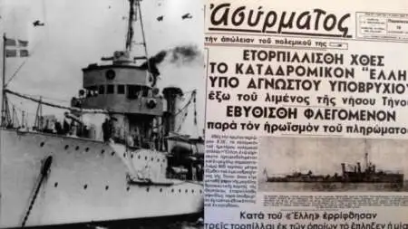Σαν σήμερα το 1940 το καταδρομικό «Έλλη» τορπιλίζεται από τους Ιταλούς στην Τήνο