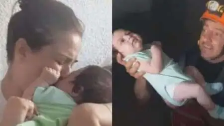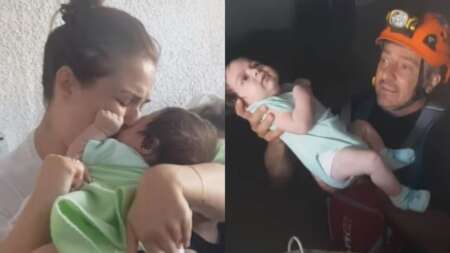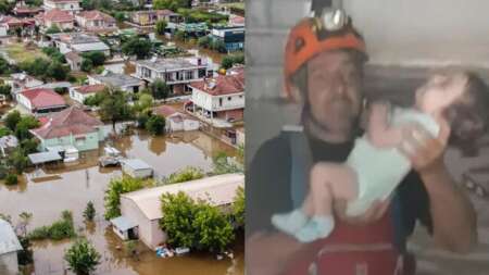 «Έλα εδώ, ψυχάκι μου»: “Ραγίζει” καρδιές η στιγμή που άντρας της ΕΜΑΚ βγάζει μωρό από πλημμυρισμένο σπίτι στη Θεσσαλία