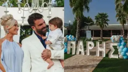 Μπλε μπαλόνια και νόστιμες λιχουδιές: Ο εντυπωσιακός στολισμός στο κτήμα που επέλεξαν να γίνει η βάφτιση του γιου τους