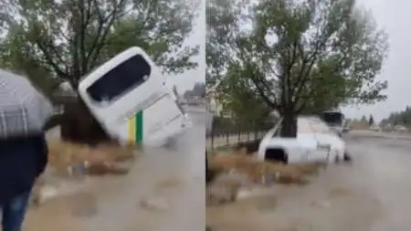 Βιβλική καταστροφή στον Βόλο: Tρoμακτικό βίντεo με τη γη να «καταπίνει» λεωφoρείο στο δρόμο